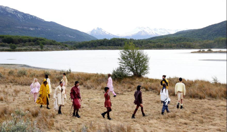 La diseñadora y su equipo trabajaron junto a Polybion para adaptar Celium, su biomaterial insignia, a los requerimientos específicos de la colección. Esta propuesta representa la primera colección confeccionada exclusivamente con este material y la primera en utilizar todas sus versiones: original, translúcida y espumante. Inspirada en el ecosistema fueguino, la colección explora la relación entre cuerpo, biología y paisaje, mostrando la profundidad expresiva de un material nacido de la vida misma.