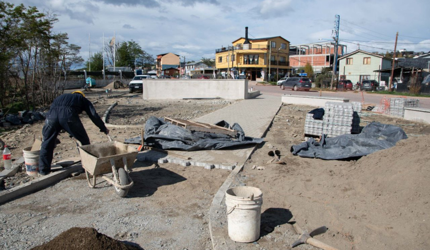 Desde la Secretaría explicaron que “la obra se ejecuta con pavimento articulado y senderos de piedra lavada, incorporando iluminación en todos los sectores. El área de juegos se desarrollará sobre el terreno natural y estará acompañada por bancos corridos que funcionarán como límite con la calle”.