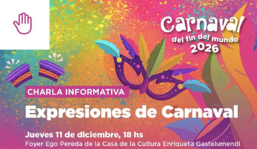 La Secretaría de Cultura y Educación de la Municipalidad de Ushuaia llevará adelante este jueves 11 de diciembre a las 18:00 horas en el Foyer Ego Pereda de la Casa de la Cultura Enriqueta Gastelumendi una charla informativa por el “Carnaval del Fin del Mundo 2026”.