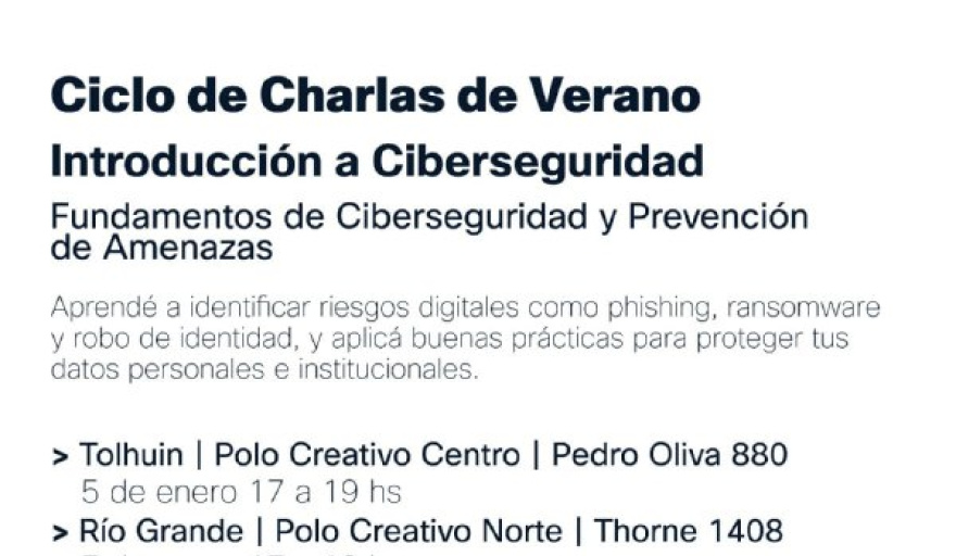 Inscripciones abiertas al ciclo de charlas en introducción a la ciberseguridad