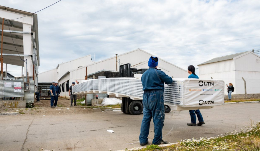 En esta etapa, arribaron a la ciudad los paneles prearmados que se utilizarán para el cerramiento exterior del gimnasio, fabricados con poliuretano (PIR) de 40 milímetros de espesor, con alto rendimiento térmico y comportamiento mejorado frente al fuego. Estos sistemas constructivos posibilitan un avance más rápido de la obra y mejores condiciones de aislamiento, fundamentales para el clima fueguino. En tanto, el bloque de acceso y servicios se ejecutará con muros de hormigón revestidos en chapa acanalada.