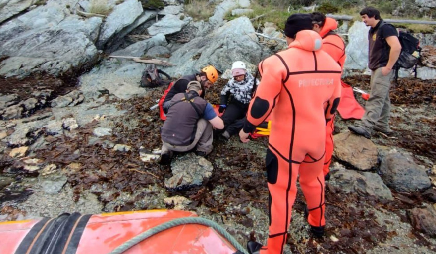 Al arribar a la zona, el personal interviniente procedió a asistir y evacuar a la mujer, quien presentaba una lesión en su pie derecho que le impedía desplazarse por sus propios medios. Posteriormente, fue trasladada hasta Bahía Ensenada, donde la recibió personal médico para su correspondiente atención y derivación al hospital local.