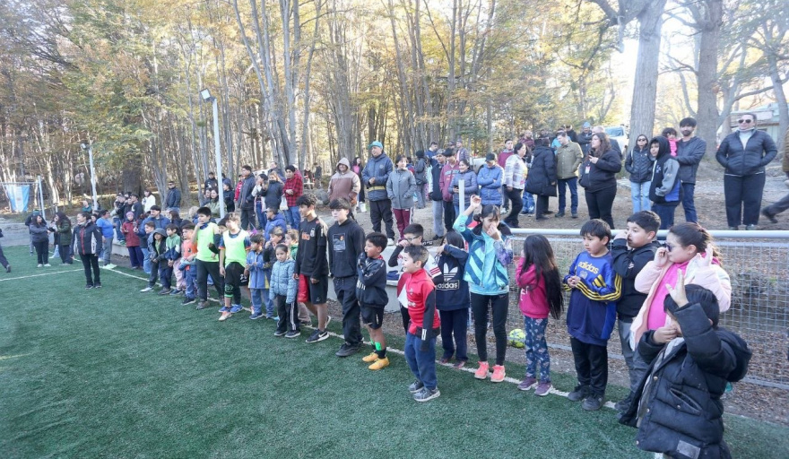 20:15 |Ushuaia, domingo 19 de abril de 2026.- La Municipalidad de Ushuaia inauguró el nuevo playón deportivo del barrio Dos Banderas, en un acto que se llevó adelante en la Plaza Nunca Jamás con la participación de vecinos, vecinas, familias y una gran cantidad de niños y niñas que disfrutaron de actividades recreativas, juegos y entrega de regalos.