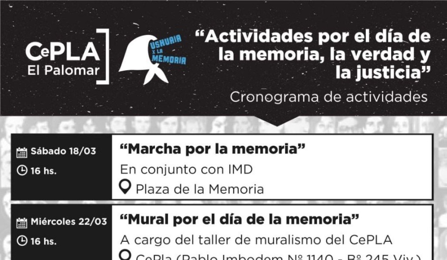 “El día 23 de marzo habrá una vigilia que organizamos con la Secretaría de Cultura junto a la Coordinación de Juventudes y contaremos con una actividad que organizaciones nacionales han desarrollado en los últimos años y a la que nos sumamos que se denomina ‘Plantando Memoria’ junto a la Secretaría de Medio Ambiente”, contó Pérez.