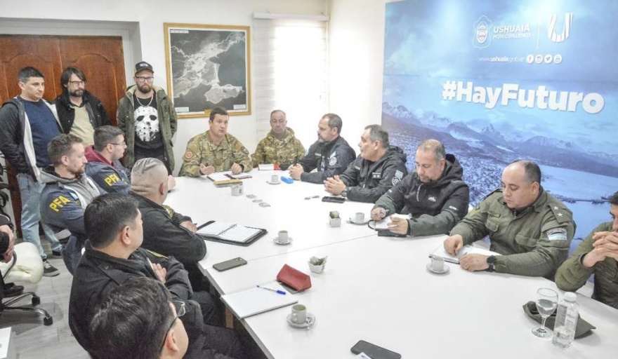 El secretario de Gobierno de la Municipalidad de Ushuaia, Cesar Molina encabezó un encuentro con representantes de Fuerzas Armadas y de Seguridad y Defensa Civil municipal para coordinar los trabajos a realizar en los días próximos al recital de La Renga del 25 de noviembre.