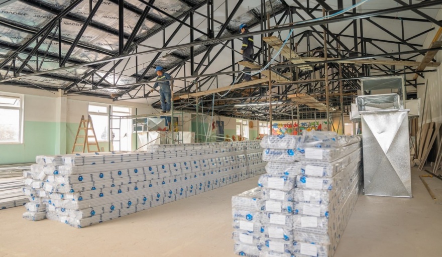 Entre las tareas más importantes se destacan la colocación del cielorraso de PVC, la adecuación e instalación de conductos de calefacción y el piso del SUM, entre otros.