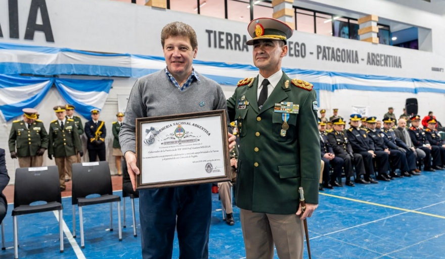 Además, las autoridades distinguieron con un diploma al Gobernador Gustavo Melella, en reconocimiento por su acompañamiento permanente a Gendarmería en la ciudad de Ushuaia.