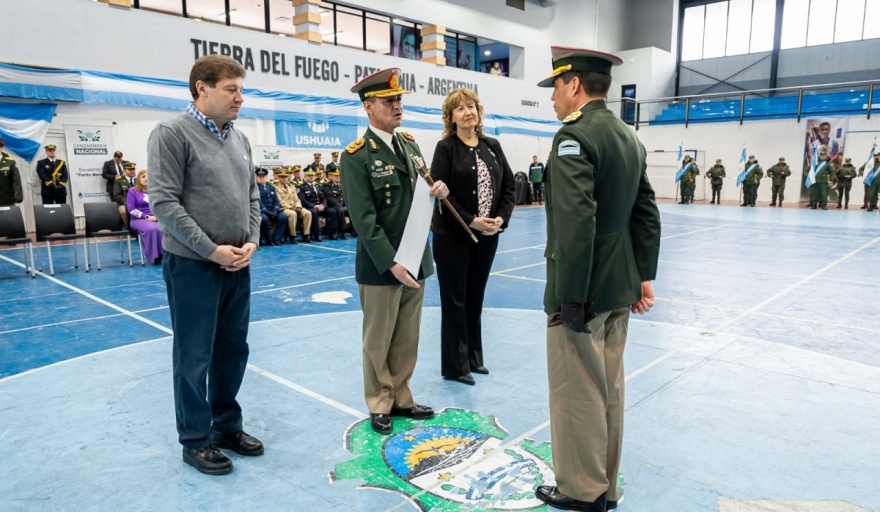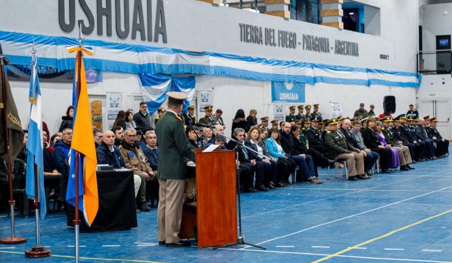 La ceremonia estuvo encabezada por el Comandante de la Región VIII de Gendarmería Nacional, Favio Benegas, y el jefe de la Agrupación XIX de Tierra del Fuego, Comandante Mayor Silvio Amarilla.