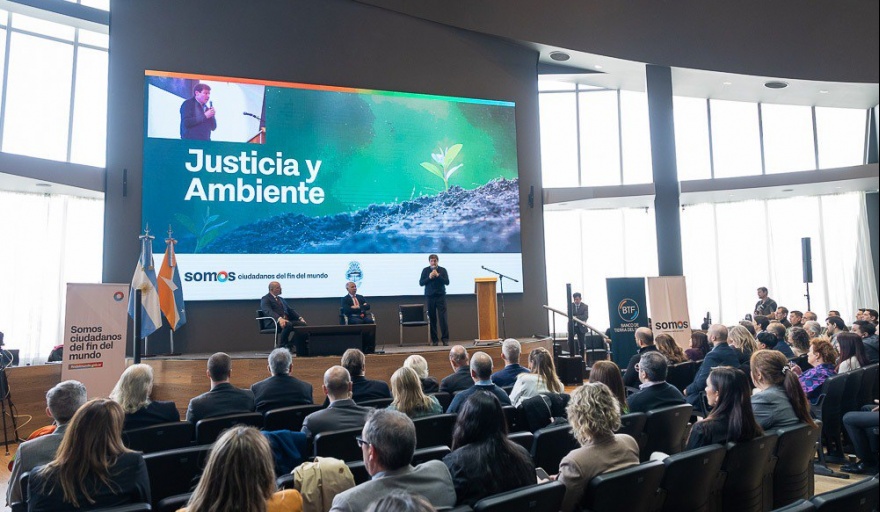 El Gobernador de Tierra del Fuego AIAS, Gustavo Melella, encabezó junto al Juez de la Corte Suprema de Justicia de la Nación, Dr. Ricardo Lorenzetti, y el Presidente del Superior Tribunal de Justicia de la Provincia, Dr. Carlos Sagastume, la apertura de la jornada “Justicia y Ambiente” que se desarrolló en la ciudad de Ushuaia, con el acompañamiento el Banco de Tierra del Fuego y la Fundación del Banco Tierra del Fuego.