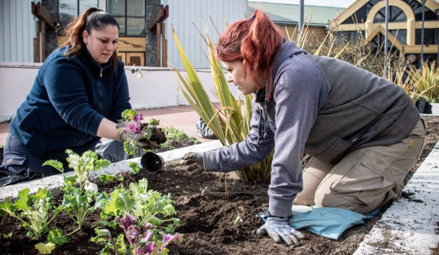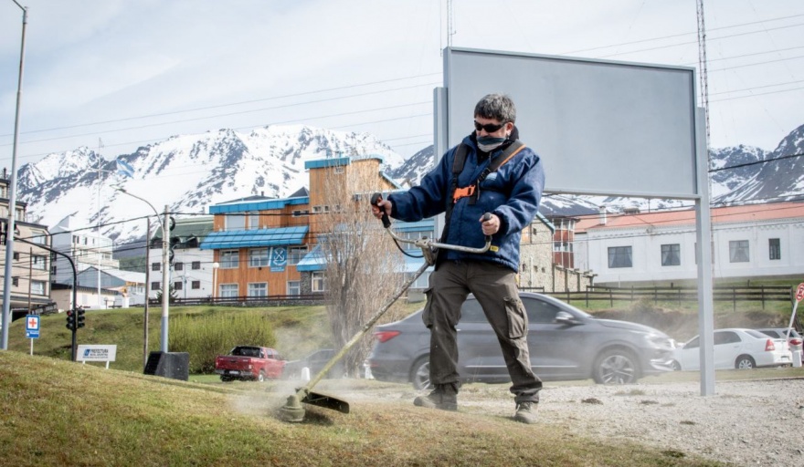 Con cortes de pasto, colocación de plantines y mejoras de los canteros instalados en las plazoletas ubicadas entre las avenidas Maipú y Prefectura Naval, trabajadores del área realizan sus tareas desde Yaganes y hacia el sector portuario.